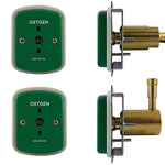 The body shall be of 1-5/16" (33 mm) diameter, one piece brass construction. For positive pressure gas services, the outlet shall be equipped with a primary and secondary check valve and the secondary check valve shall be rated at a maximum of 200 psi (1,379 kPa) in the event the primary check valve is removed for maintenance. Outlet bodies shall be gas specific by indexing each gas service to a gas specific pin indexing arrangement on the respective identification module.