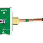 Outlets shall be manufactured with a 7-3/4" [197 mm] length type ?K? 1/2" [12.7 mm] outside diameter (3/8" nominal) size copper inlet pipe stub which is silver brazed to the outlet body. The body shall be of 1-5/16" [33 mm] diameter, one piece brass construction. For positive pressure gas services, the outlet shall be equipped with a primary and secondary check valve and the secondary check valve shall be rated at a maximum of 200 psi [1,379 kPa] in the event the primary check valve is removed for maintenance. Outlet bodies shall be gas specific dual pin indexing arrangement on the respective identification module.
