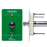 The “Latch Valve Assembly” consists of: a connector with an integral check valve, an indexing block complete with indexing pins, a color coded gas front plate and a chrome frame. The “Latch Valve Assembly” is inserted into the “Rough-in Assembly” and secured screws.