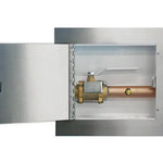 The door shall be constructed of stainless steel and shall be mounted to the back box assembly by standard #6 * 3/8" tapping screws as provided. Access to the zone shutoffs shall be by turning the key to unlock position and swinging the door open. The security door can be closed and relocked only after the shut-off handles have been returned to the open position.