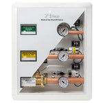 Each recessed zone indicator panel box shall consist of the following components: A steel box which can house one to seven zone shut-offs with tube extensions, an aluminum frame and a pull-out removable window. Gauge options are 100 psi, 300 psi or 30 inHg. Terminal strips are provided with the box. The sensors and DISS fittings are gas specific, and provided with the alarm.