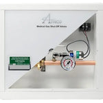 Each recessed zone indicator panel box shall consist of the following components: A steel box which can house one zone shut-off with tube extensions, an aluminum frame and a pull-out removable window. Gauge options are 100 psi, 300 psi or 30 inHg. The terminal strips are provided with the box. The sensors and DISS fittings are gas specific and provided with the alarm.